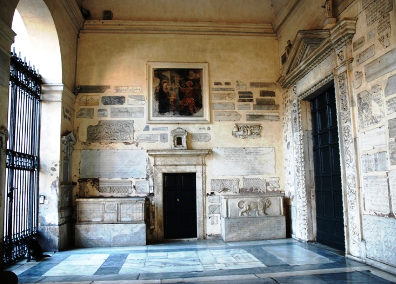 Spodní část v portiku jsou spolia z Caracallových lázní. Wikimedia Commons