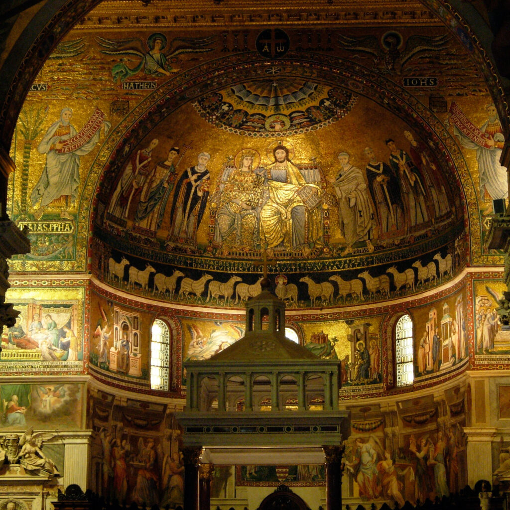 Apsida baziliky je vyplněna nádhernými mozaikami. Wikipedie